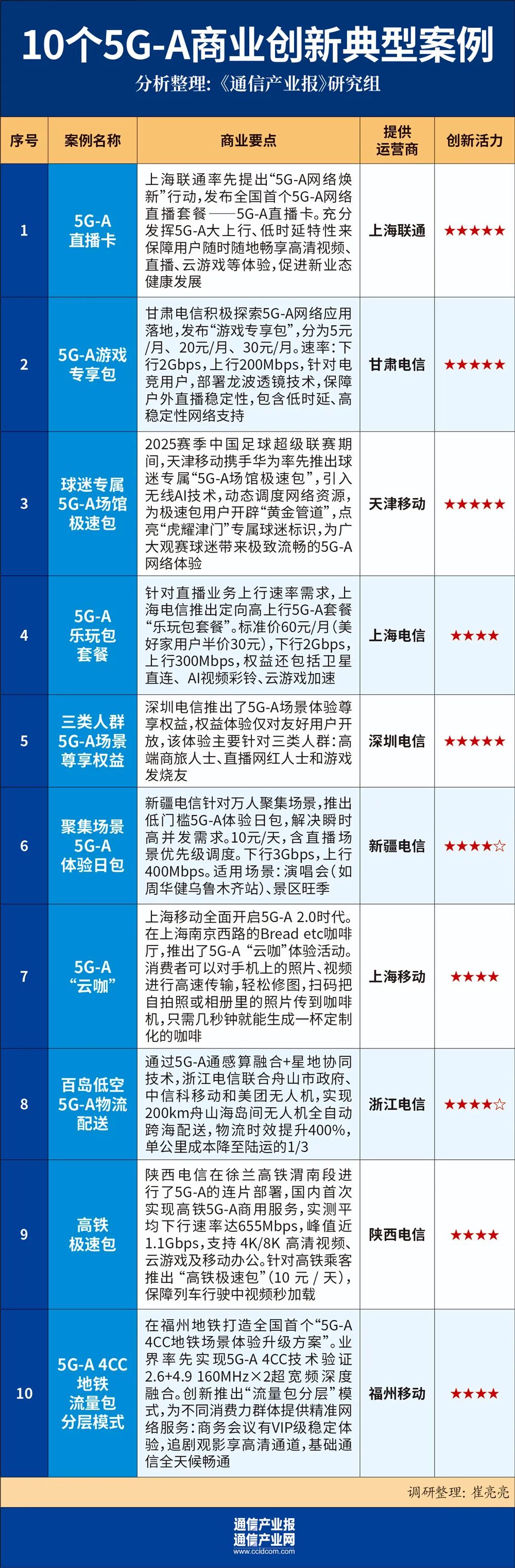 在5g-A套餐布局上,《通信产业报》全媒体记者调研发现,运营商的侧重点也正从单纯的卖流量转向卖体验,5g-A服务融合多元优势业务组合直达用户,地方运营商也纷纷推出特色专属5g-A套餐或流量包。